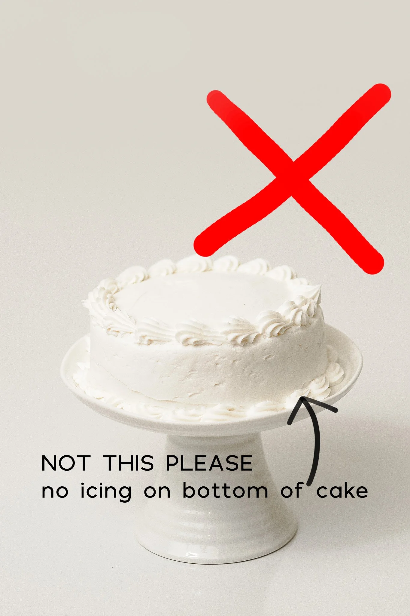 no piping of icing on the bottom of the cake - this makes is hard to transfer without ruining the icing